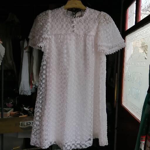 総レースのロングブラウスは裏地が淡い桃色でほんのり透けます。